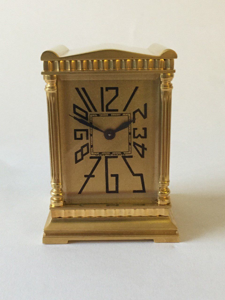 Nice Art Deco timepiece carriage clock with original escapement stamped on backplate Grimshaw Baxter & JJ Elliot and has been fully overhauled and comes with travel case